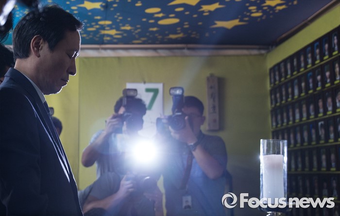 (서울=포커스뉴스) 1일 오전 서울 종로구 광화문 광장에서 우상호 더불어민주당 원내대표가 이석태 세월호 참사 특별조사위원장 단식농성장 방문전 세월호 희생자 분향소에서 분향하고 있다.