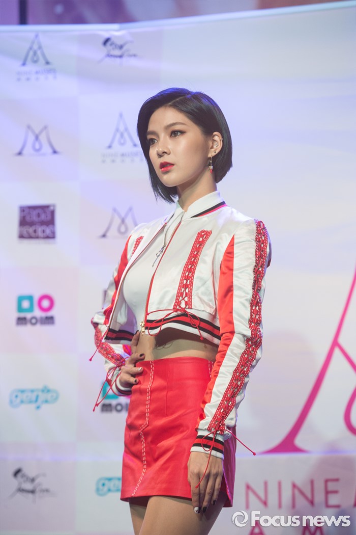 (서울=포커스뉴스) 4일 오전 서울 도봉구 플랫폼창동61에서 열린 걸그룹 나인뮤지스A의 싱글앨범 'MUSES DIARY' 발표 쇼케이스에 참석한 멤버 소진이 포토타임을 갖고 있다.