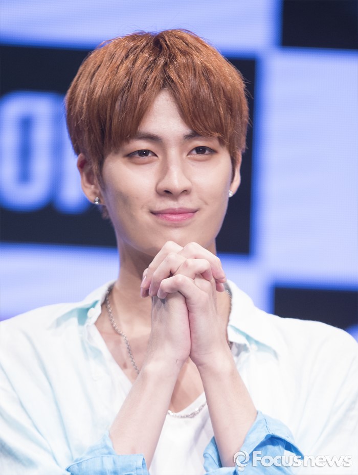 (서울=포커스뉴스) 4일 오후 서울 강남구 일지아트홀에서 열린 아이돌 그룹 업텐션의 미니앨범 'Summer go'발표 쇼케이스에 참석한 멤버 고결이 포토타임을 갖고 있다.