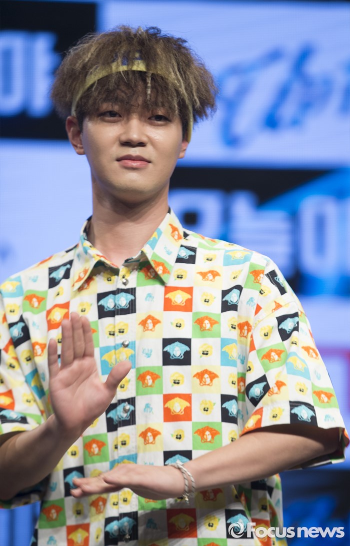 (서울=포커스뉴스) 4일 오후 서울 강남구 일지아트홀에서 열린 아이돌 그룹 업텐션의 미니앨범 'Summer go'발표 쇼케이스에 참석한 멤버 비토가 포토타임을 갖고 있다.