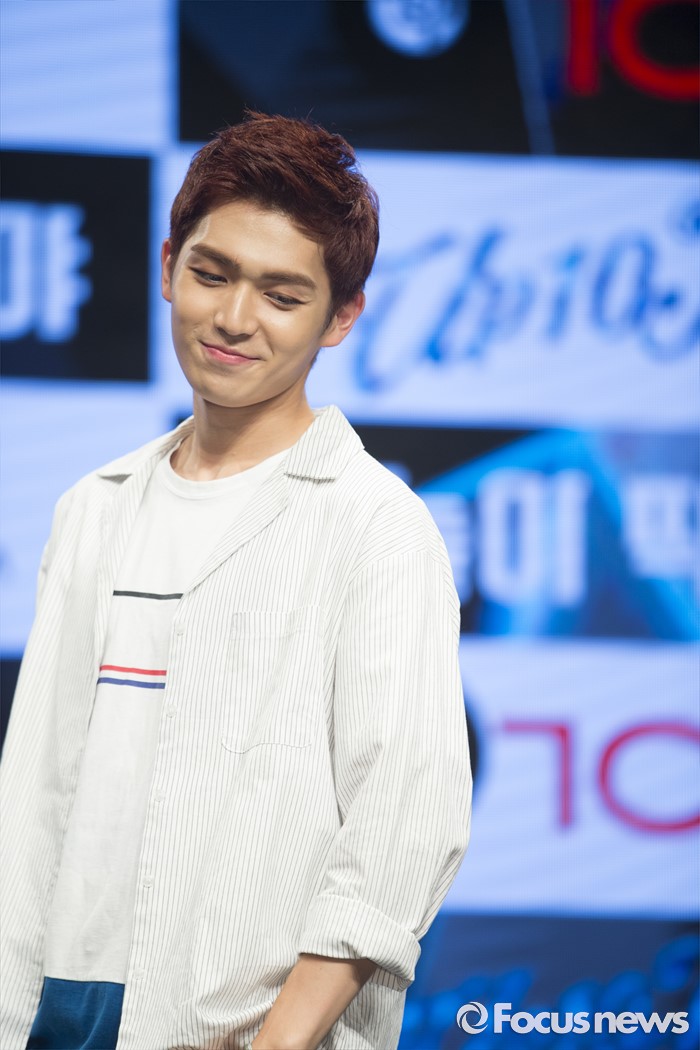 (서울=포커스뉴스) 4일 오후 서울 강남구 일지아트홀에서 열린 아이돌 그룹 업텐션의 미니앨범 'Summer go'발표 쇼케이스에 참석한 멤버 규진이 포토타임을 갖고 있다.