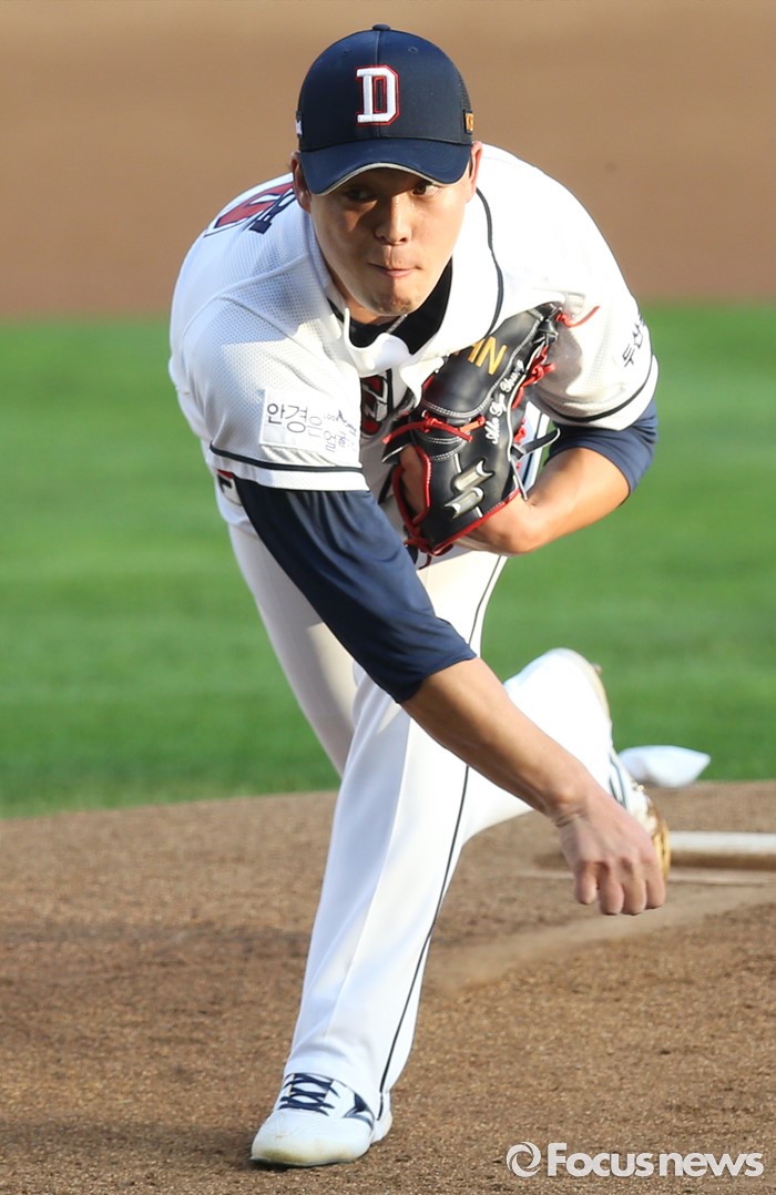 (서울=포커스뉴스) 4일 서울 잠실구장에서 열린 2016 프로야구 LG-두산 경기에서 1회초 두산 선발투수 안규영이 투구하고 있다