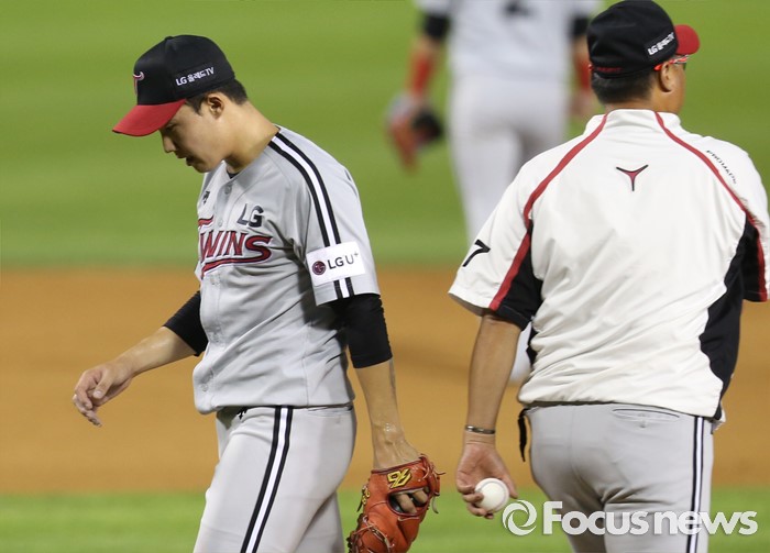 | △ 마운드 내려가는 LG 선발투수 임찬규 |