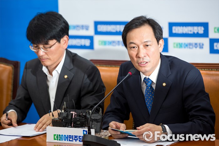 (서울=포커스뉴스) 우상호 더불어민주당 원내대표가 5일 오전 서울 여의도 국회에서 열린 상임위원회 간사단 간담회에 참석해 모두발언 하고 있다.