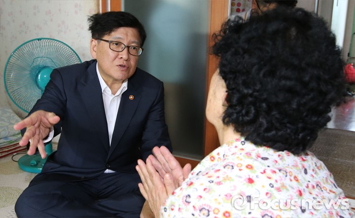(세종=포커스뉴스) 정진엽 보건복지부 장관이 5일 오전 세종시 금남면에서연이은 폭염으로 무더위에 취약한 독거노인들의 어려움을 점검하고 애로사항을 청취하고 있다.