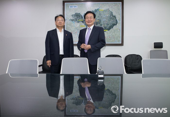 (서울=포커스뉴스) 5일 오전 서울 여의도 국회 의원회관에서 추경 예산 등 협조를 위해 방문한 유일호(왼쪽) 경제부총리 겸 기획재정부 장관이 변재일 더불어민주당 정책위의장과 만나 인사한 뒤 자리로 향하고 있다.