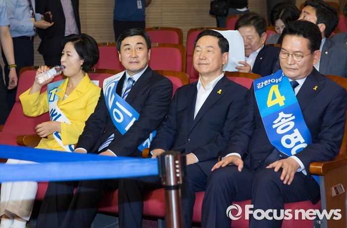 | △ 정견발표 기다리는 더민주 당대표 후보들 |