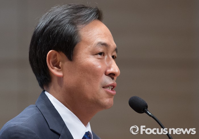 (서울=포커스뉴스) 5일 오후 서울 여의도 국회 의원회관에서 열린 더불어민주당 당대표 선출을 위한 예비경선대회에 참석한 우상호 원내대표가 인사말을 하고 있다.