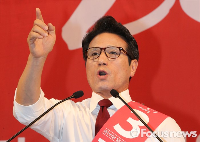 (천안=(천안=포커스뉴스) 5일 오후 충남 천안시 유관순체육관에서 열린 새누리당 대표 및 최고위원 선출 충청권 합동연설회에서 당 대표에 출마한 정병국 후보가 정견발표를 하고 있다.