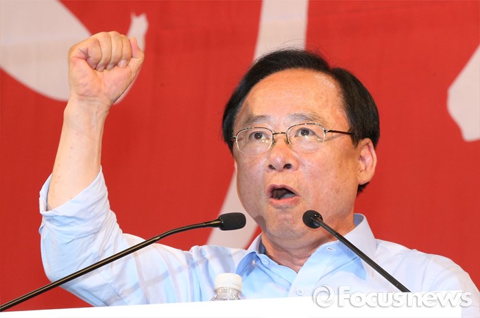 (천안=포커스뉴스) 5일 오후 충남 천안시 유관순체육관에서 열린 새누리당 대표 및 최고위원 선출 충청권 합동연설회에서 당 대표에 출마한 이주영 후보가 정견발표를 하고 있다.