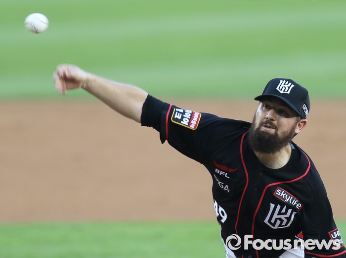 (서울=포커스뉴스) 5일 서울 잠실구장에서 열린 2016 프로야구 kt-LG 경기에서 1회말 kt 선발투수 로위가 투구하고 있다.