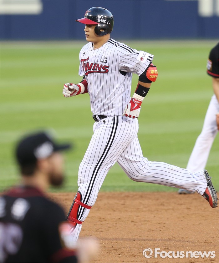 (서울=포커스뉴스) 5일 서울 잠실구장에서 열린 2016 프로야구 kt-LG 경기 2회말 LG 선두타자로 나온 정상호가 좌월 솔로 홈런을 치고 베이스를 돌고 있다.