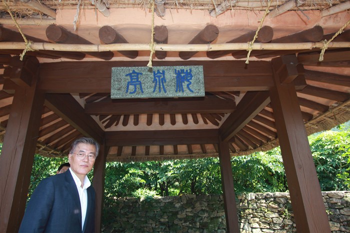 (서울=포커스뉴스) 문재인 더불어민주당 전 대표가 7일 오전 전남 광양 봉강면 매천 황현 선생 생가를 방문해 생가 뒷편 매천정을 둘러보고 있다. <사진제공=문재인 전 대표측>