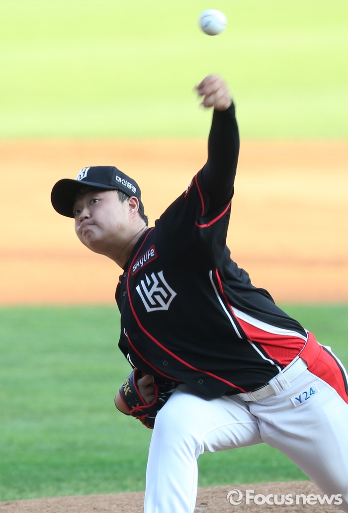 (서울=포커스뉴스) 5일 서울 잠실구장에서 열린 2016 프로야구 kt-LG 경기에서 1회말 kt 선발투수 박세진이 투구하고 있다.