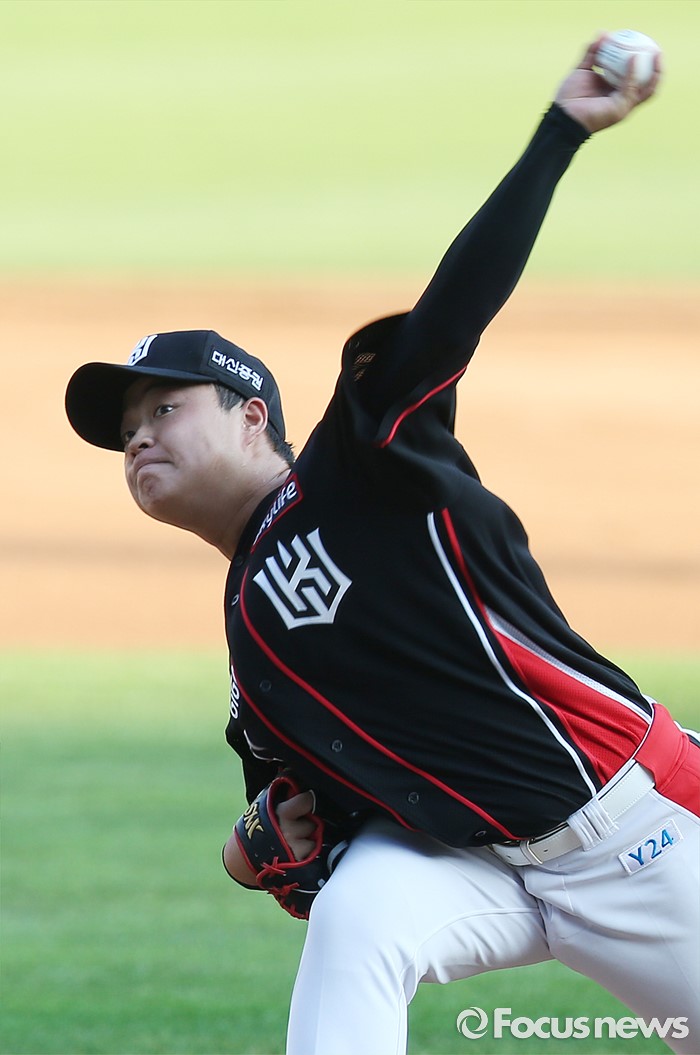 (서울=포커스뉴스) 5일 서울 잠실구장에서 열린 2016 프로야구 kt-LG 경기에서 1회말 kt 선발투수 박세진이 투구하고 있다.