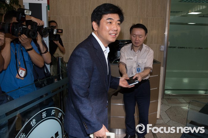 (서울=포커스뉴스) 김병욱 더불어민주당 의원이 사드 배치와 관련한 중국 방문 일정을 위해 8일 오전 서울 강서구 김포공항을 통해 출국하고 있다. 김 의원을 비롯해 김병욱·박정·소병훈·손혜원·신동근 의원 등 초선의원 6명은 8일부터 2박 3일간 중국에 머문 뒤 10일 귀국한다.
