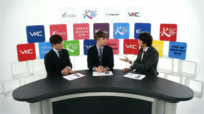 한국방문위원회는 인적서비스 의존율이 높은 관광산업에서의 종사자 서비스 역량 강화를 위해 각 접점에서 '맞춤형 친절서비스 교육'을 실시하고 있으며 서비스매뉴얼, 글로벌에티켓 등 교육 콘텐츠를 제작하여 지자체 및 관광 유관기관을 중심으로 배포하고 있다. K스마일 교육 영상과 서비스매뉴얼은 한국방문위원회 홈페이지 및 K스마일 캠페인 홈페이지에서 시청 및 다운로드가 가능하다.한국방문위원회는 K스마일 교육 영상 3종과 서비스매뉴얼 9종을 제작해 관광업 종사자 및 일반 국민을 대상으로 배포한다. 사진 왼쪽부터 장위안, 줄리안, 로빈.<사진제공=한국방문위원회>