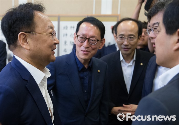 (서울=포커스뉴스) 9일 오전 서울 여의도 국회 귀빈식당에서 열린 2017년도 예산 당정협의에 참석한 유일호 경제부총리 겸 기획재정부 장관이 의원들과 대화하고 있다.