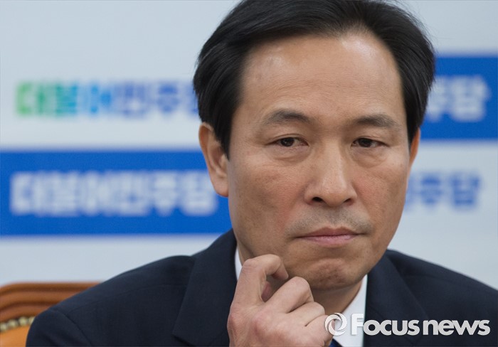 (서울=포커스뉴스) 9일 오전 서울 여의도 국회에서 열린 더불어민주당 원내대책회의에 참석한 우상호 원내대표가 생각에 잠겨 있다.