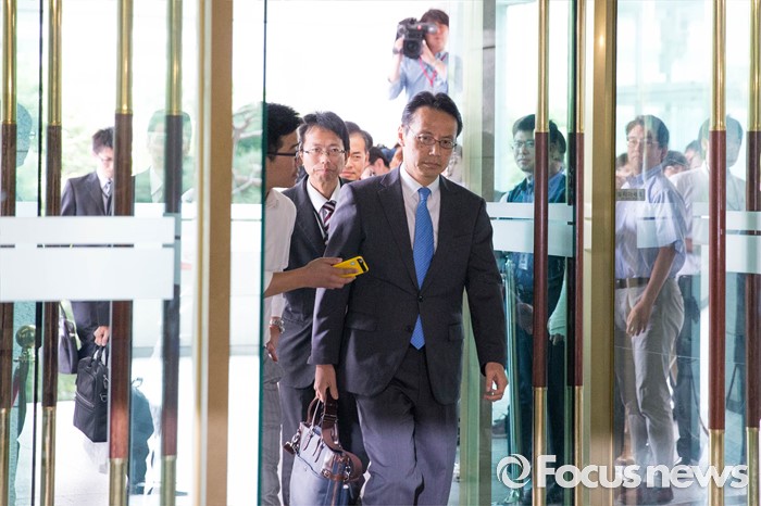 | △ 외교부 들어서는 가나스기 겐지 국장 |