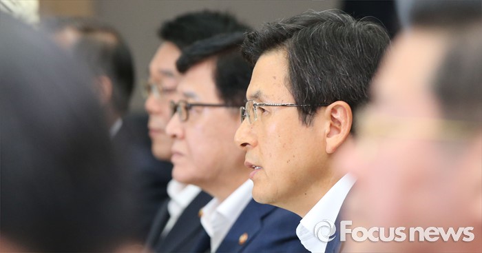 (세종=포커스뉴스) 황교안(오른쪽 두 번째)) 국무총리가 9일 오전 세종시 정부세종청사 국무회의장에서 서울-세종 영상회의로 열린 국무회의를 주재하고 있다.