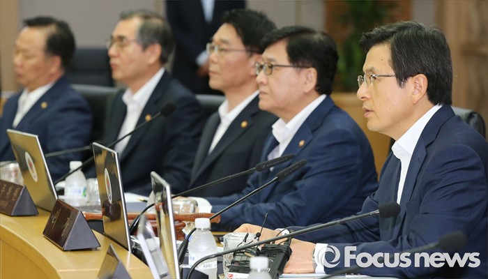 (세종=포커스뉴스) 황교안(오른쪽) 국무총리가 9일 오전 세종시 정부세종청사 국무회의장에서 서울-세종 영상회의로 열린 국무회의를 주재하고 있다.