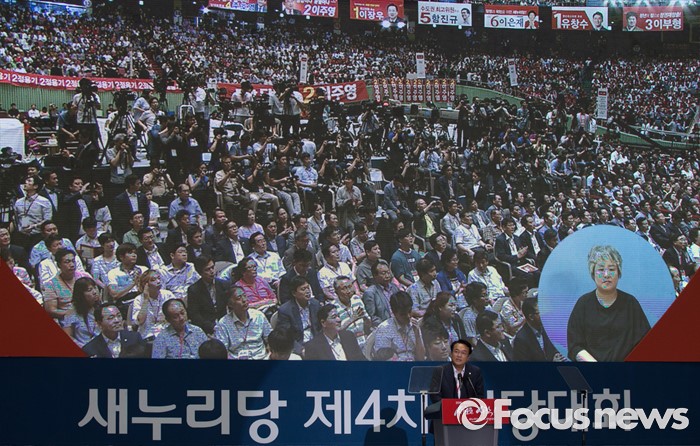 (서울=포커스뉴스) 9일 오후 서울 송파구 잠실실내체육관에서 열린 새누리당 4차 전당대회에 참석한 정진석 원내대표가 인사말을 하고 있다.