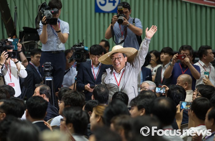 (서울=포커스뉴스) 9일 오후 서울 송파구 잠실실내체육관에서 열린 새누리당 4차 전당대회에 참석한 이정현 당대표 후보가 입장하고 있다.