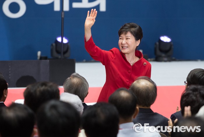 (서울=포커스뉴스) 박근혜 대통령이 9일 오후 서울 송파구 잠실실내체육관에서 열린 새누리당 4차 전당대회에 참석해 당원들을 향해 인사하고 있다.