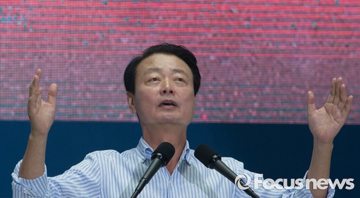 (서울=포커스뉴스) 9일 오후 서울 송파구 잠실실내체육관에서 열린 새누리당 4차 전당대회에 참석한 한선교 당대표 후보가 정견발표를 하고 있다.