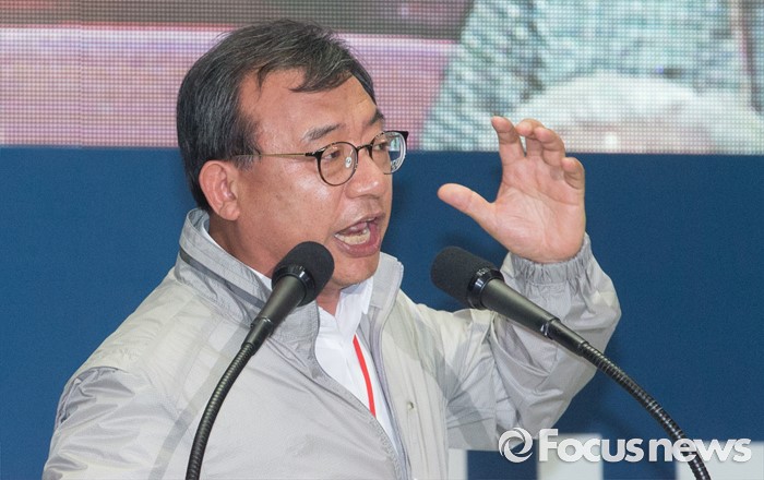 (서울=포커스뉴스) 9일 오후 서울 송파구 잠실실내체육관에서 열린 새누리당 4차 전당대회에 참석한 이정현 당대표 후보가 정견발표를 하고 있다.