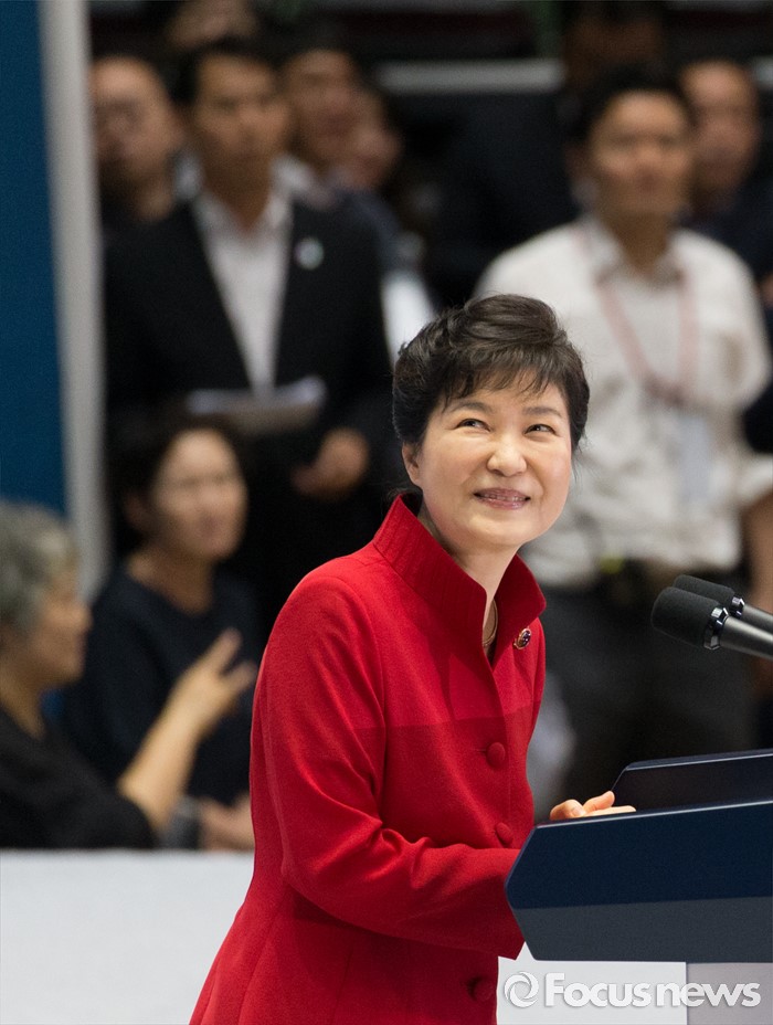 (서울=포커스뉴스) 박근혜 대통령이 9일 오후 서울 송파구 잠실실내체육관에서 열린 제4차 새누리당 전당대회에서 축사를 위해 단상에 올라 당원들을 살펴보고 있다.