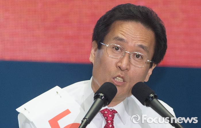 (서울=포커스뉴스) 9일 오후 서울 송파구 잠실실내체육관에서 열린 새누리당 4차 전당대회에 참석한 함진규 최고위원 후보가 정견발표를 하고 있다.