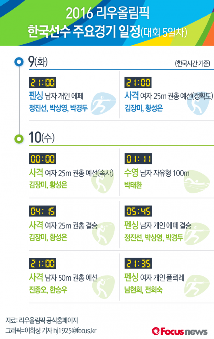 | △ [그래픽] 2016 리우올림픽 한국선수 주요경기 일정(대회 5일차) |