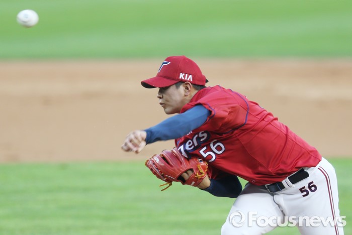 (서울=포커스뉴스) 9일 서울 잠실구장에서 열린 2016 프로야구 KIA-두산 경기에서 1회말 KIA 선발투수 임기준이 투구하고 있다.