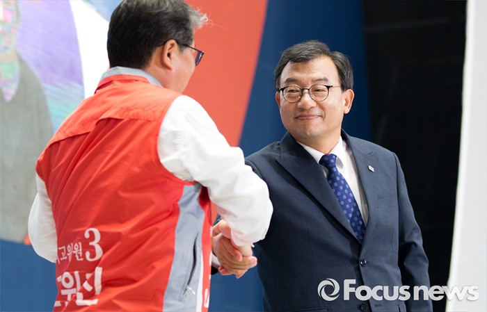 | △ 악수하는 이정현과 조원진 |