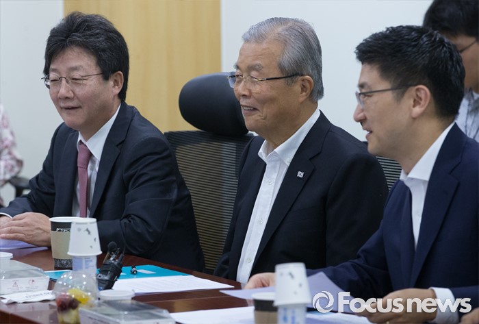 (서울=포커스뉴스) 10일 오전 서울 여의도 국회 의원회관에서 열린 '어젠다(Agenda) 2050' 회의에 참석한 유승민(왼쪽), 김세연(오른쪽) 새누리당 의원과 김종인 더불어민주당 비대위 대표가 대화하고 있다.