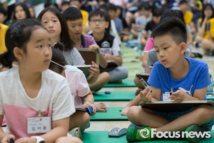(서울=포커스뉴스) 10일 오전 서울 성동구 성동구청 대강당에서 열린 '성동 어린이 독서 골든벨'에서 초등학생들이 문제를 풀고 있다.