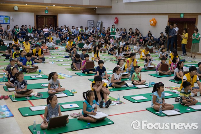 (서울=포커스뉴스) 10일 오전 서울 성동구 성동구청 대강당에서 열린 '성동 어린이 독서 골든벨'에서 초등학생들이 문제를 풀고 있다.