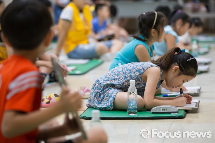 (서울=포커스뉴스) 10일 오전 서울 성동구 성동구청 대강당에서 열린 '성동 어린이 독서 골든벨'에서 초등학생들이 문제를 풀고 있다.