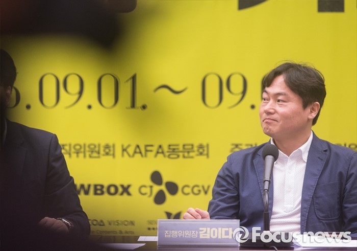 (서울=포커스뉴스) 10일 오전 서울 중구 프레스센터에서 열린 '한국영화아카데미 장편과정 10주년 카파 십세전' 기자간담회에 참석한 김이다 집행위원장이 미소를 짓고 있다.