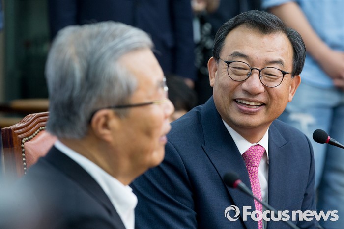 | △ 김종인 더민주 대표 발언 듣는 이정현 새누리 대표 |
