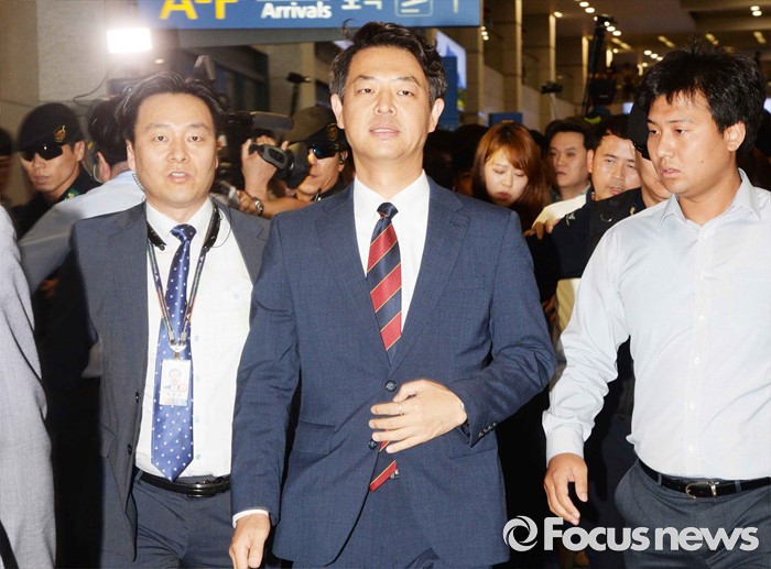 (인천공항=포커스뉴스) 사드배치에 반발하는 중국 측 입장을 듣기 위해 중국을 방문한 김영호(가운데) 더불어민주당 의원이 10일 오후 인천국제공항을 통해 귀국하고 있다.