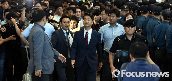 (인천공항=포커스뉴스) 사드배치에 반발하는 중국 측 입장을 듣기 위해 중국을 방문한 김영호(가운데) 더불어민주당 의원이 10일 오후 인천국제공항을 통해 귀국하고 있다.