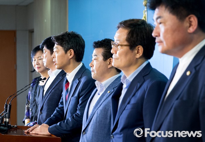 (서울=포커스뉴스) 방중을 마치고 귀국한 더불어민주당 초선 의원들이 10일 오후 서울 여의도 국회 정론관에서 기자회견을 하고 있다. 왼쪽부터 손혜원, 김병욱, 김영호, 박정, 신동근, 소병훈 의원.