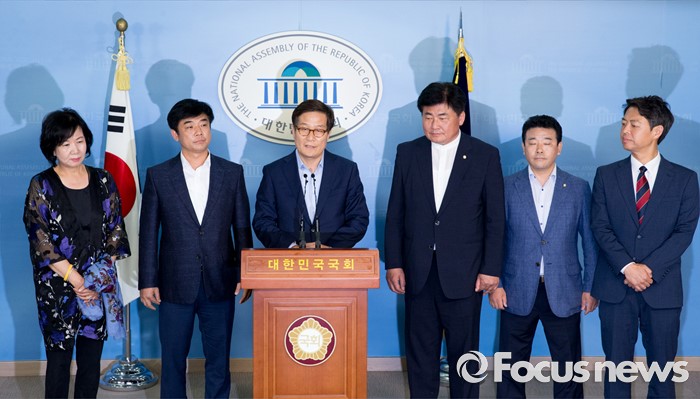 (서울=포커스뉴스) 방중을 마치고 귀국한 더불어민주당 초선 의원들이 10일 오후 서울 여의도 국회 정론관에서 기자회견을 하고 있다. 왼쪽부터 손혜원, 김병욱, 신동근, 소병훈, 박정, 김영호 의원.