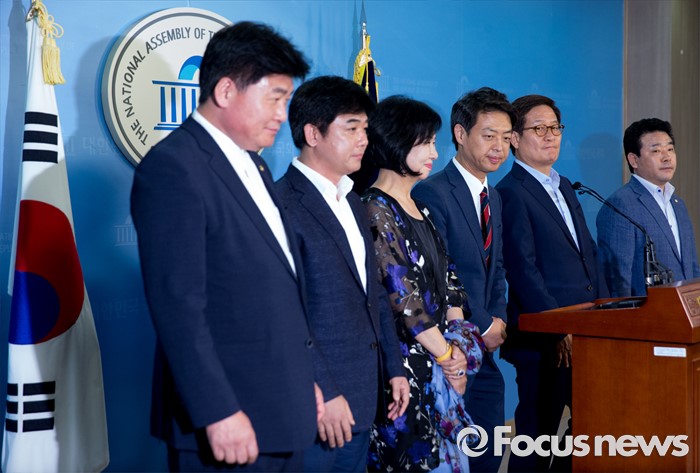 (서울=포커스뉴스) 방중을 마치고 귀국한 더불어민주당 초선 의원들이 10일 오후 서울 여의도 국회 정론관에서 기자회견을 마친 뒤 인사하고 있다. 왼쪽부터 소병훈, 김병욱, 손혜원, 김영호, 신동근, 박정 의원.