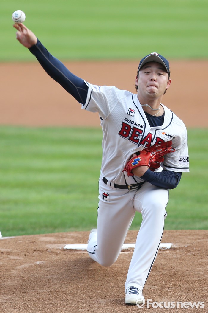 (서울=포커스뉴스) 10일 서울 잠실구장에서 열린 2016 프로야구 KIA-두산 경기에서 1회초 두산 선발투수 안규영이 투구하고 있다.