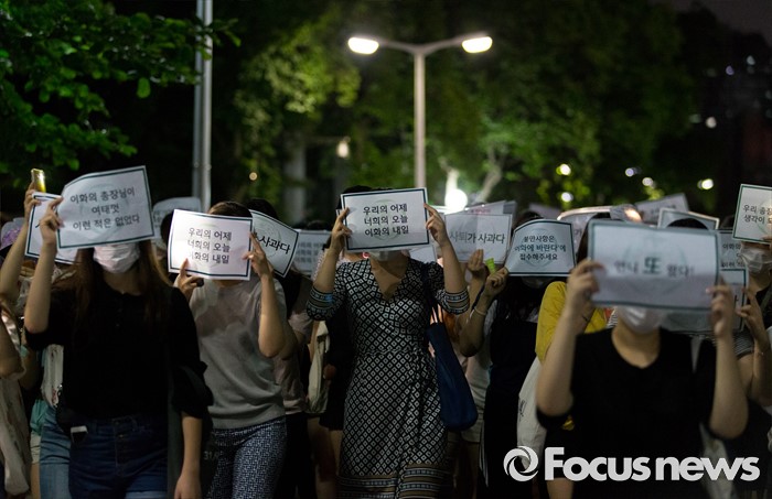 (서울=포커스뉴스) 10일 오후 서울 서대문구 이화여대에서 재학생 및 졸업생들이 최경희 총장의 사퇴를 요구하며 행진을 하고 있다.