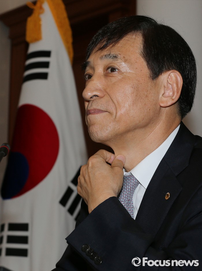 가계부채가 빠르게 덩치를 불려나가는 점도 금리 인하에 부담으로 작용했다. 한은이 10일 공개한 ‘2016년 7월 금융시장 동향’에 따르면 지난달 정책모기지론을 포함한 은행 가계대출은 673조7000억원으로 집계됐다. 한 달 새 6조3000억원이나 늘었다. 또 가계대출 증가세가 가팔랐던 지난해를 제외한 2010~2014년 7월 평균 증가폭보다 3배 이상이나 큰 증가폭을 보였다.(서울=포커스뉴스) 이주열 한국은행 총재가 11일 오전 서울 중구 한국은행에서 열린 제15차 금융통화위원회에 참석해 목을 만지고 있다. 2016.08.11 오장환 기자